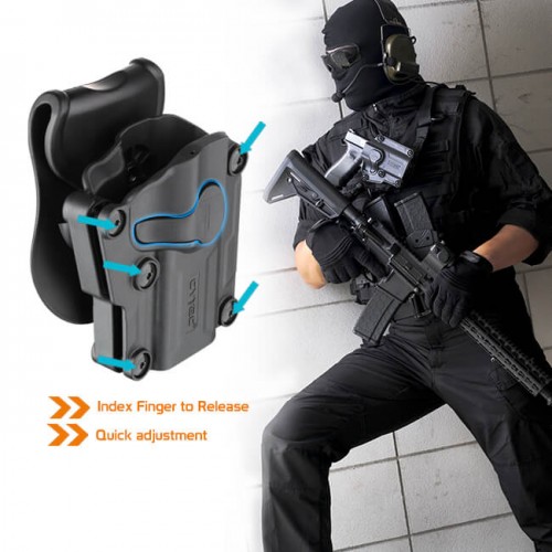 Кобуру можна носити під кутом, адже вона може крутитись на 360 градусів. Для цього вам потрібно